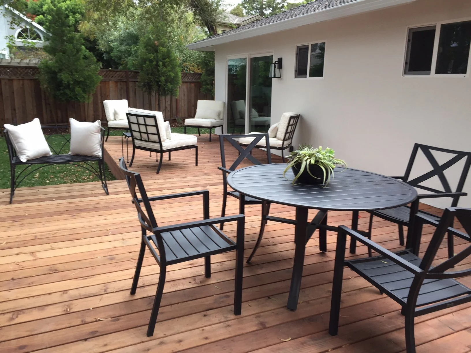We also cleared the overgrowth on the lot and added a natural screen between the neighbors to give the back yard a more private feel. We also added a deck off the new kitchen to provide an indoor-outdoor experience.